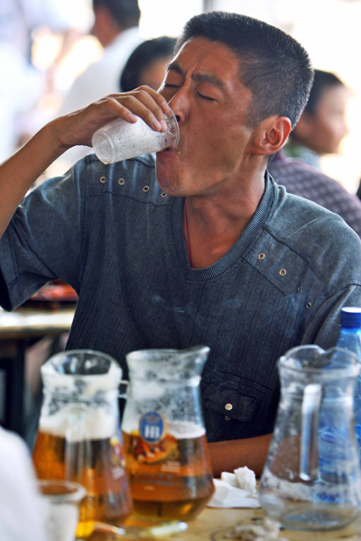A man drinks beer during the beer festival in Qingdao, China's eastern province of Shandong, August 19, 2006. Qingdao celebrates its 16th beer festival from August 12 to 26.[Reuters]