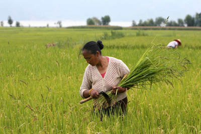 A Chinese woman works in her rice field on the outskirts of Dali, China's southern province of Yunnan, August 23, 2006. [Reuters]