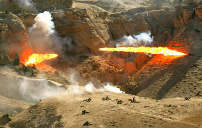 2nd phase of joint anti-terror drill kicked off (Xinhua) Updated: 2006-08-26 16:11  Flamethrowers are applied to surrender diehard terrorists hidden in