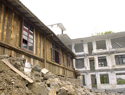 shelter cottage is seen built on the ruins on Aug 26 in a school at Yanjin County, Southwest China's