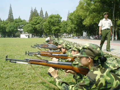 Military training for freshmen (newsphoto) Updated: 2006-08-28 08:58  Freshmen and freshwomen of Suzhou University learn to operate guns