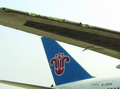 vertical empennage of Airbus 320 while sliding at the Beijing Capital Airport