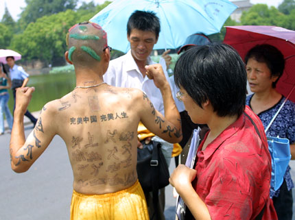 Man got tattoos to hail the Olympics (newsphoto) Updated: 2006-08-30 10:44