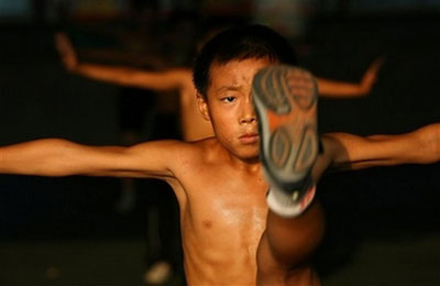 A Chinese youth practices Kung Fu during a lesson at a martial