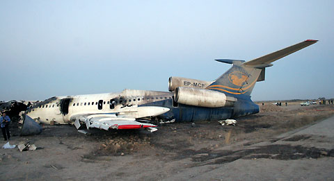 A general view of the crashed Tupolev 154 plane in