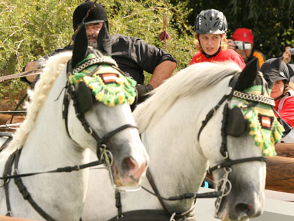 Austria's Josef Leibetseder drives his horses through an obstacle during the Marathon portion of the Driving Competition at the World Equestrian Games in Aachen September 1, 2006. [Reuters]