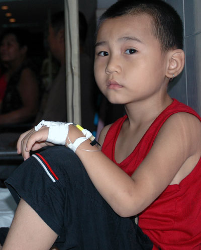 Food poisoning hospitalizes 300 pupils (Xinhua) Updated: 2006-09-04 06:54  A sick boy is receiving drops in a local hospital on