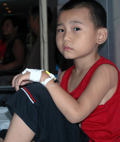 A boy receives transfusion