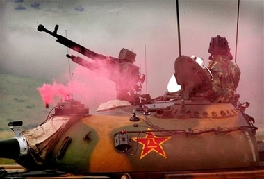 The warning smoke is released by a tank after it was 'attacked'
