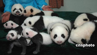Nine panda cubs pose for a group photo (cnsphoto) Updated: 2006-09-29 11:26