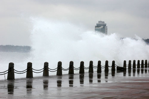 Surf rips shore in Yantai