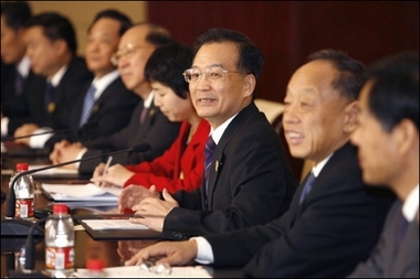 | Chinese Premier Wen Jiabao (C) speaks to Philippine President Gloria