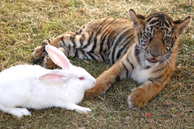 Tiger cubs, rabbits become friends(Newsphoto)Updated: 2006-11-06 19:18