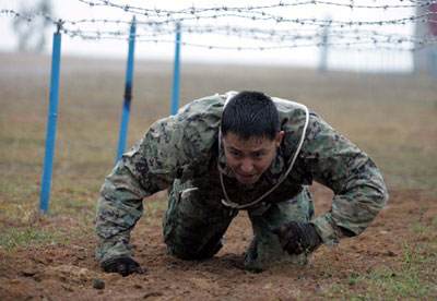 wire obstacle during a friendly joint exercise in Zhanjiang,