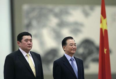 China's Premier Wen Jiabao (R) and Mongolia's Prime Minister