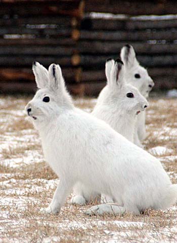 Hares are seen at a natural park after they grew winter hair in Harbin, northeast China's Heilongjiang Province December 6, 2006. [newsphoto]