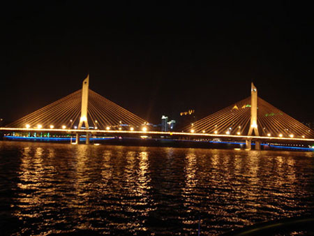 Haiyin Bridge over the Pearl River is seen at night in Guangzhou, South China's Guangdong Province, December 18, 2006. [chinadaily.com.cn]