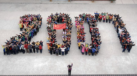 HAPPY NEW YEAR! Pupils line up to form the numbers "2007" to celebrate the upcoming New Year at a school in Hefei, in east China's Anhui province December 31, 2006. [Reuters]
