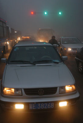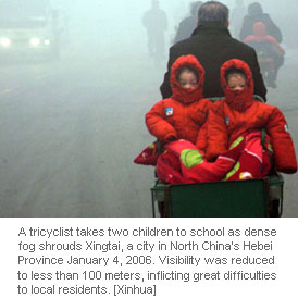 Dense fog shrouds North China city(Newsphoto)Updated: 2007-01-04 22:22
