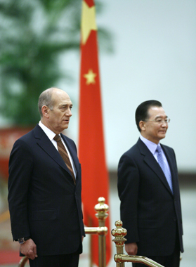 Israeli Prime Minister Ehud Olmert and China's Premier Wen Jiabao