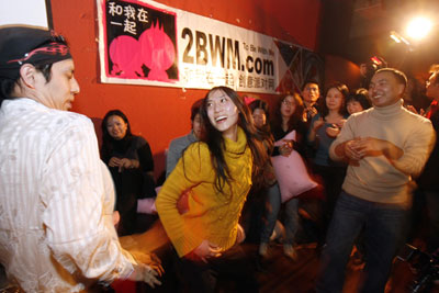 Chinese dance in a club in Shanghai, as part of a matching game, during an event organised by a dating website January 20, 2007. [Reuters]