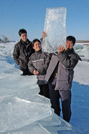 A tourist from southern China enjoy ice and snow in Heihe, northeast China's Heilongjiang province January 24, 2007. [Newsphoto]