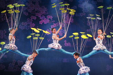 Artistes display their plate-spinning skills during an acrobatics show in Beijing February 21, 2007. Acrobatics, dating back to more than 2,000 years, is one of China's oldest art forms. [Reuters]