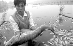 dead fish, poisoned by pollution. At least 100,000 fish died as a result