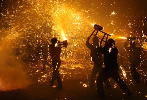 Miao people perform flaming dragon dance for Lantern Festival(CRIENGLISH.com)Updated: 2007-03-07 09:53