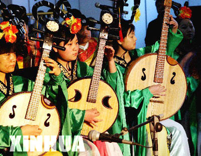 Musicians play classical Chinese music at China Xi'an (International) Travel Fair 2007 in West China's Shaanxi province on March 7. China Xi'an (International) Travel Fair 2007 opens in the capital city of Shaanxi on March 7, 2007.[Xinhua] ![]()