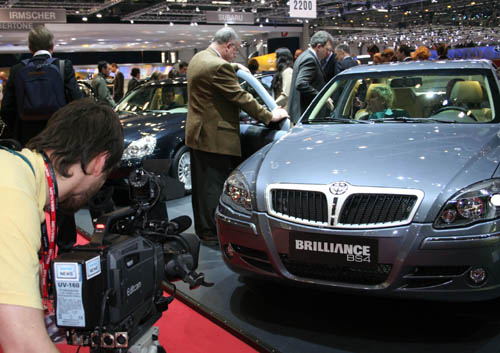 A cameraman shoots a Huachen Brilliance from China Auto at the 2007 Geneva International Auto Show in Geneva, Switzerland March 6, 2007. It's the first time for a Chinese automaker to attend international exhibitions overseas. [Xinhua]