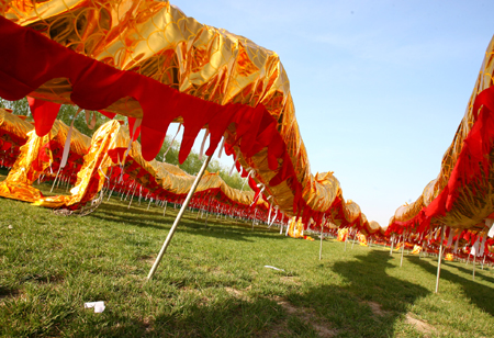 A 5,056-metre-long dragon is seen in Luoyang, central China's Henan Province, April 3, 2007. The dragon, said to be world's longest, was built for a grand dragon dance performance on the April 10 Luoyang Peony Festival opening ceremony. [newsphoto]