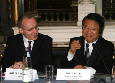 LONDON -- Visiting Chinese State Council Information Office Minister Cai Wu