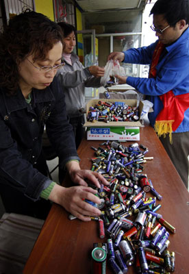 Volunteers collect batteries for recycle