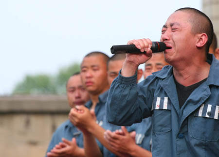 A prisoner regrets for his crime during a speech given by a motivational speaker at a prison in Nanjing, east China's Jiangsu Province, April 26, 2007. Many of the prisoners were moved by the affecting speech and expressed deep regrets for what they had done. [newsphoto]