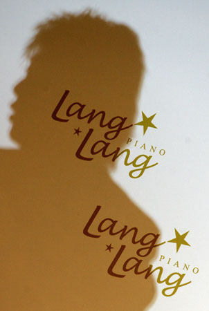 The shadow of Chinese pianist Lang Lang is shown on the logo of