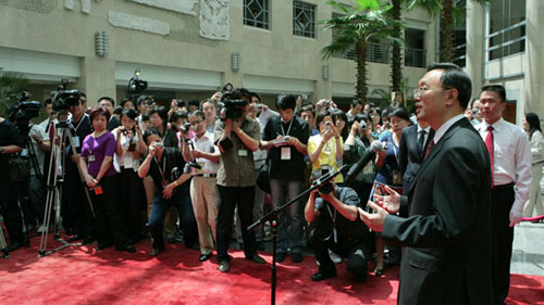 China's new Foreign Minister Yang Jiechi gives a talk on the Open Day of the Foreign Ministry in Beijing on Saturday, May 19, 2007. [Xinhua]