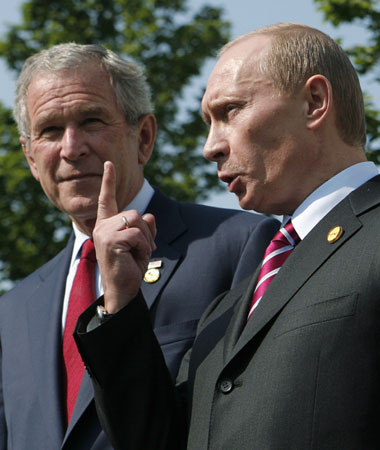 US President George W. Bush (L) meets with President of Russia Vladimir Putin at the G8 summit in Heiligendamm June 7, 2007. [Reuters]