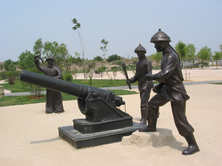 Bronze statues are standing at Fort Xipaotai in Yingkou City of Northeast China's Liaoning province. The relics, first constructed in 1882, were used as a military fortress against Japanese invaders in Sino-Japanese War during 1894-1895. The site has now become one of the key cultural relics under the state-level protection.