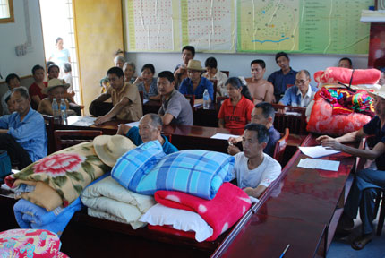 | Villagers rest in a temporary shelter as a pending massive