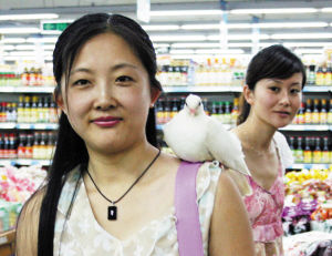 A wounded pigeon saved by a woman in Qingdao, Shandong Province, refuses to leave its rescuer, accompanying her everywhere she goes. About three weeks ago, the woman, surnamed Huang, brought the pigeon home from a roadside, where it was lying with bleeding wings. Thanks to her tender care, the pigeon recovered quickly. One week ago, Huang set the pigeon free, but it was back in minutes. Now Huang takes her evening walks with the pigeon standing on her shoulder. She said she will treat the pigeon like a close friend as long as it wants to stay. (Qingdao Morning Post)