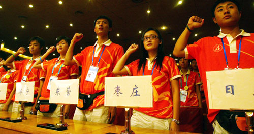 Volunteers are ready to serve the Qingdao International Regatta, a test game for the 2008 Olympics, in Qingdao, Shandong Province August 8, 2007. The test games last from August 9 to 24. [Xinhua]