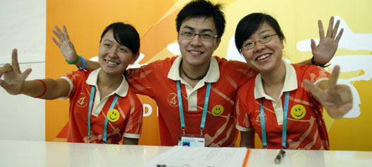 Volunteers are ready to serve the Qingdao International Regatta, a test game for the 2008 Olympics, in Qingdao, Shandong Province August 8, 2007. The test games last from August 9 to 24. [Xinhua]