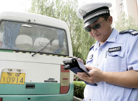 Updated: 2007-08-18 10:19 ![]() A police officer stops a vehicle with an even-numbered license plate on a main thoroughfare in Beijing during the first of a four-day air quality experiment for the Olympics, August 17, 2007. Drivers with even-numbered license plates were told to stay off the roads on Friday or face fines. On the first day of the test, traffic flow appeared to be lighter. [Xinhua]
