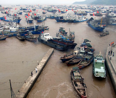 Updated: 2007-09-17 23:00 ![]() Ships take shelter at a dock before Typhoon Wipha makes landfall in Taizhou, East China's Zhejiang Province September 17, 2007. East China provinces have been on high alert as Typhoon Wipha is expected to make landfall tomorrow. [Newsphoto]