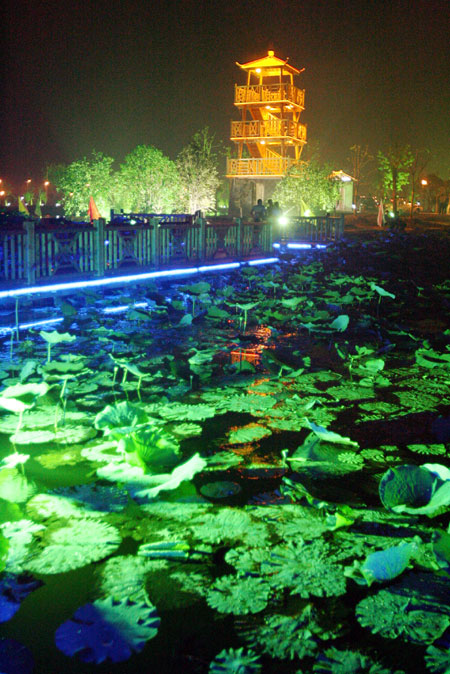 Photo taken on Sept. 24, 2007 shows the night view of the new wetland park in Suzhou city, East China's Jiangsu Province. [Xinhua]