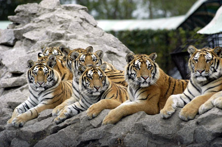 Photo taken on Sept 26, 2007 shows Siberian Tigers of a zoo in Heilongjiang Province. Fifteen Siberian Tigers of the zoo are sent to Xiamen, East China's Fujian Province for show to alleviate the economic pressure of this zoo. [newsphoto]