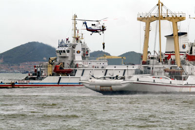 Updated: 2007-09-29 23:05 ![]() A helicopter descends a rescuer to a battleship during a joint maritime search and rescue drill in the northern sea area in Yantai, East China's Shandong Province September 29, 2007. More than 200 related personnel took part in the drill to improve search-rescue response capabilities. [newsphoto]