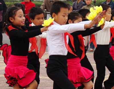 Updated: 2007-10-10 23:37 ![]() School children dance during a collective dance competition in Wuzhi, Central China's Henan Province October 9, 2007. The collective dance on campus has hit a snag as it is regarded as a source for puppy love among students. [newsphoto]