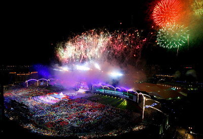 Fireworks explode during the closing ceremony of the 2007 Special Olympics World Summer Games in Shanghai October 11, 2007. [Xinhua]